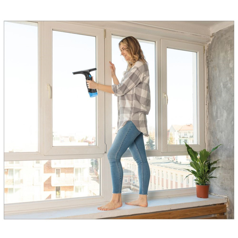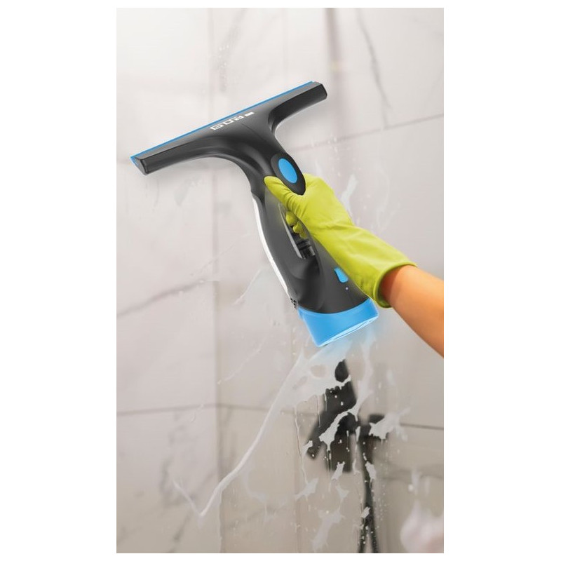 Akumulátorový vysávač na okná so zabudovaným akumulátorom čistí hladké plochy jednoducho a efektívne. Postará sa o žiarivo čisté okná bez zbytočnej námahy. Okná budú dokonale čisté bez šmúh a kvapkania vody. Navyše, nie je potrebné žiadne dodatočné čistenie. Pracovná šírka 280 mm pre očistenie väčšej plochy za kratší čas, a to bez zníženia kvality. Priložená fľaša s rozprašovačom uľahčuje prípravu okien s čistiacim roztokom, aby sa ľahko odstránila aj tá najväčšia špina. Vďaka veľkej nádobe na špinavú vodu s objemom 125 ml nie je potrebná zdĺhavá výmena vody pri čistení, a tak dokážete pracovať efektívnejšie. Dva návleky na stierku z mikrovlákna zaisťujú čistenie bez šmúh a dajú sa rýchlo vyprať a opäť použiť. Nabíjačka na zabudovaný akumulátor je súčasťou balenia.
