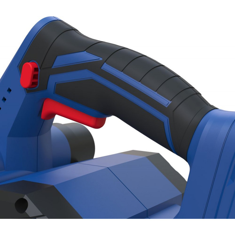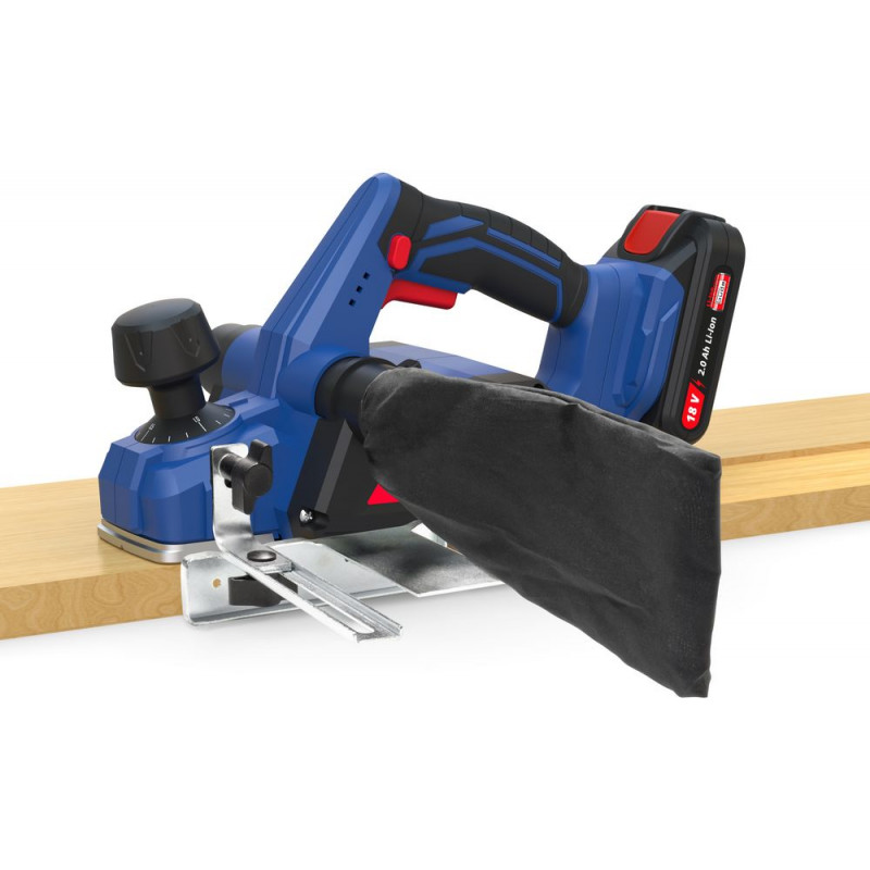Akumulátorový hoblík zo série akumulátorového náradia 18V E3. Plynulé nastavenie hĺbky záberu až do 1,5 mm. Protišmyková rukoväť s mäkkým povrchom. Ochrana obrobku vďaka automaticky vyklápacej parkovacej pätke. Karbidový obojstranný hobľovací nôž, masívna hliníková základová platňa. V-drážka pre presné zrážanie hrán v rôznych veľkostiach. Drážkový hĺbkový doraz a paralelný doraz pre precíznu prácu. Obojstranné pripojenie na zberné vrecko na prach alebo externý odsávací systém. Dodáva sa bez akumulátora a nabíjačky.