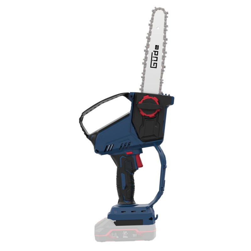 Akumulátorová mini reťazová píla GMK 18-0-S je výkonná, mimoriadne šikovná a mnohostranne použiteľná jednoručná píla na konáre vhodná na orezávanie ovocných stromov, odvetvovanie, ako aj na akúkoľvek starostlivosť o porasty okolo domu a v záhrade. Súčasťou balenia je kvalitná vodiaca lišta a vysokokvalitná reťaz s dlhou životnosťou. Systém rýchleho napínania reťaze bez použitia náradia a automatické mazanie reťaze umožňujú efektívnu prácu bez nepríjemných prestávok. Táto malá píla presviedča príjemným pocitom, bezkefkovým a vysokoúčinným elektromotorom s nízkymi vibráciami, ako aj nízkou hmotnosťou pre prácu bez únavy. Horná bezpečnostná rukoväť a chránič rúk poskytujú najlepšiu možnú ochranu pred poranením. Ľahká a praktická akumulátorová mini reťazová píla zo série akumulátorového náradia E3. Bezkefkový motor pre maximálny výkon a dlhšiu životnosť. S olejovou nádržkou na automatické mazanie reťaze. Napínanie a výmena reťaze a vodiacej lišty bez použitia náradia. Ergonomická mäkká rukoväť, bezpečnostná rukoväť s ochranným puzdrom, ochranný kryt reťaze a vodiacej lišty pre bezpečné uloženie. Vrátane bezpečnostného krytu reťaze. Dodáva sa bez akumulátora a nabíjačky.