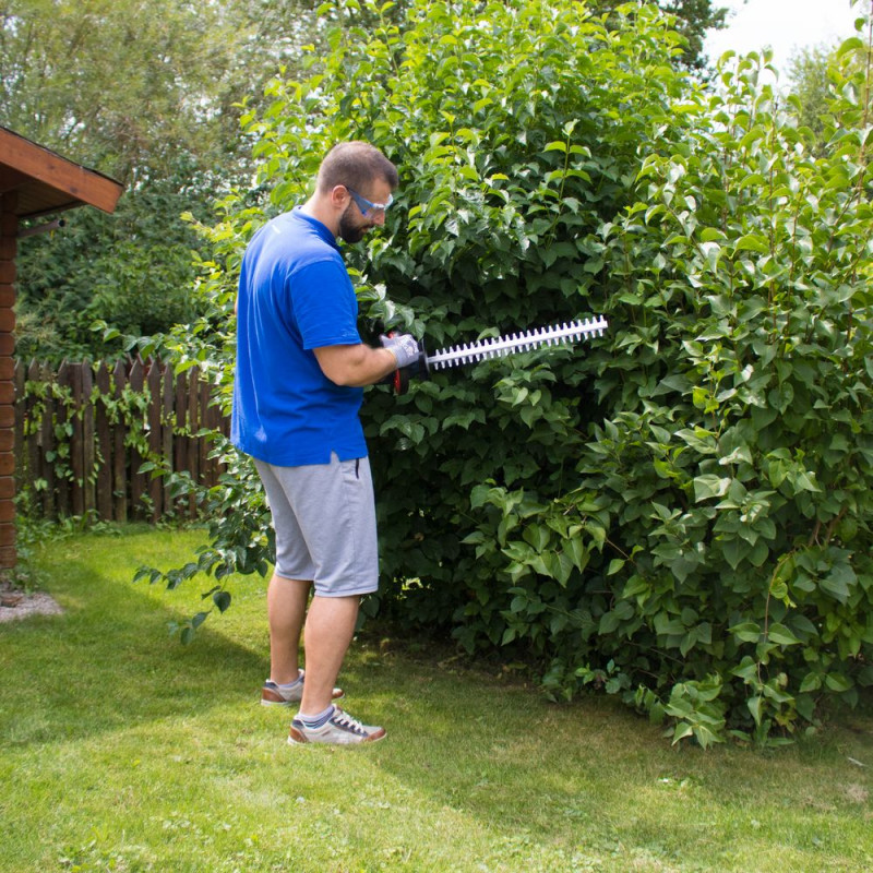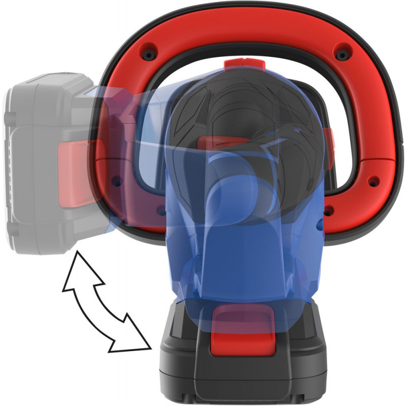 Akumulátorové nožnice na živý plot so systémom batérie 18V E³. Dvojručný bezpečnostný spínač, protibežné laserom rezané a diamantom brúsené nože, rýchle zastavenie nožov, o 180° otočná rukoväť, kovová prevodovka, hliníkový kryt nožov, ochrana pred úderom na držiaku, kryt na ruky, mäkká rukoväť. Vrátane batérie 2,0 Ah a nabíjačky 0,5 A.
