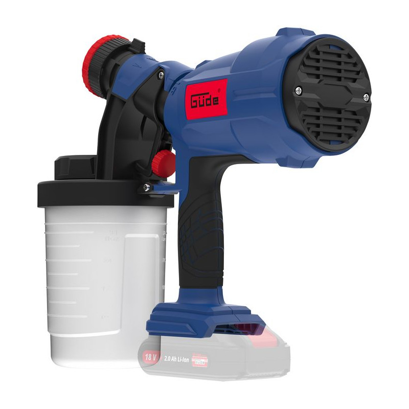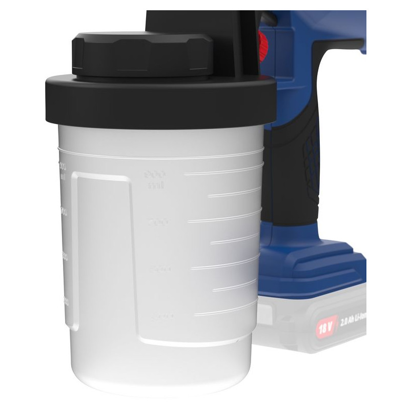 Akumulátorová striekacia pištoľ na farbu zo série akumulátorového náradia 18V E3, vhodná na všetky bežne dostupné farby, laky a glazúry s viskozitou do 60 DIN/sek. Nastaviteľné množstvo farby, rovnomerné nanášanie farby. Striekacie vzory je možné nastaviť nezávisle od dýzy: kruhový nástrek, horizontálny a vertikálny plochý nástrek. Odoberateľná dýzová jednotka pre jednoduché čistenie, 2 dýzy (Ø 2,0 mm / Ø 2,5 mm), veľká, odoberateľná nádoba na farbu s objemom 900 ml, mäkké držadlo, nádoba na meranie viskozity farby, čistiaca kefka, čistiaca ihla, filter. Bez akumulátora a nabíjačky.