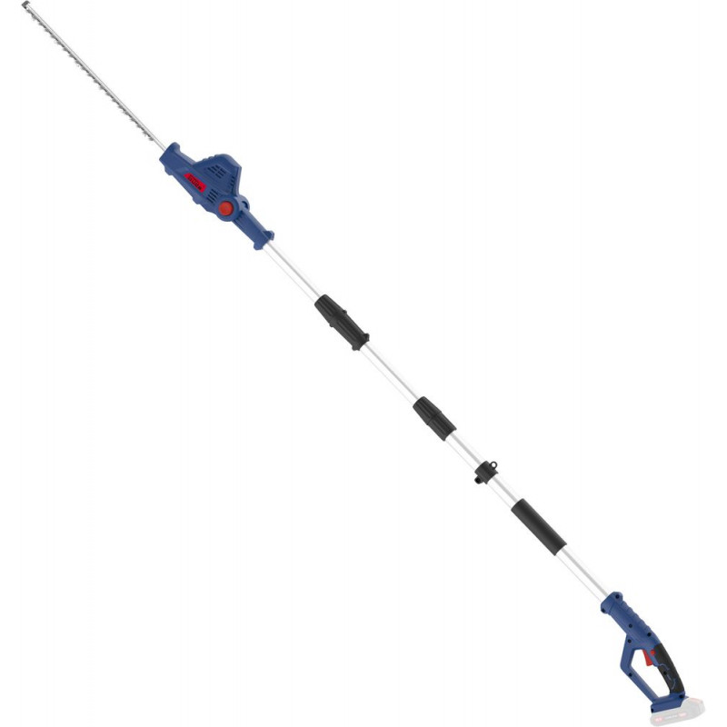 Akumulátorové nožnice na živý plot so systémom batérie 18V E³. Výklopná hlava motora o 90° (6 polôh), protibežné, laserom rezané a diamantom brúsené nože, rýchle zastavenie nožov, kovová prevodovka, teleskopická násada, mäkká rukoväť, prídavná rukoväť, ochrana lišty, ramenný popruh. Bez batérie a nabíjačky.