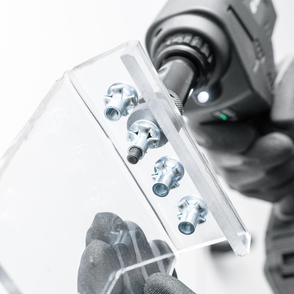 Vyhotovenie: Kompaktné, nárazuvzdorné puzdro so Softgrip a bezkartáčovým motorom pre dlhú životnosť, ako aj LED na osvetlenie pracovného priestoru. Vysoká funkčná bezpečnosť vďaka elektronickému riadeniu. Procesy osádzania a vŕtania sú funkčne oddelené. Výmena závitových tŕňov bez použitia náradia a presné nastavenia zdvihu na ovládacom paneli na prístroji. Riadenie monitoruje nastavený zdvih osádzania, aby sa zabezpečila presná aplikácia.