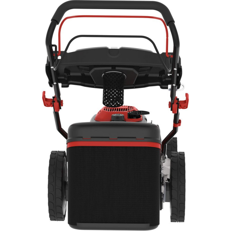 Benzínová kosačka na kosenie trávnikov s plochou do 2200 m2. 4-taktný motor Power-Engine, hliníkový podvozok, ergonomicky tvarovaná, výškovo nastaviteľná vodiaca rukoväť. 6-stupňové nastavenie výšky kosenia, 65 -litrový zberný vak s ukazovateľom stavu naplnenia. Kolesá uložené na gulôčkových ložiskách pre ľahký chod po nerovných plochách. Palivové čerpadlo Primer, mulčovací klin, panel na riadidlách s držiakom pohárov a odkladacím priestorom. Pohon zadných kolies s prevodom pre ľahký chod.