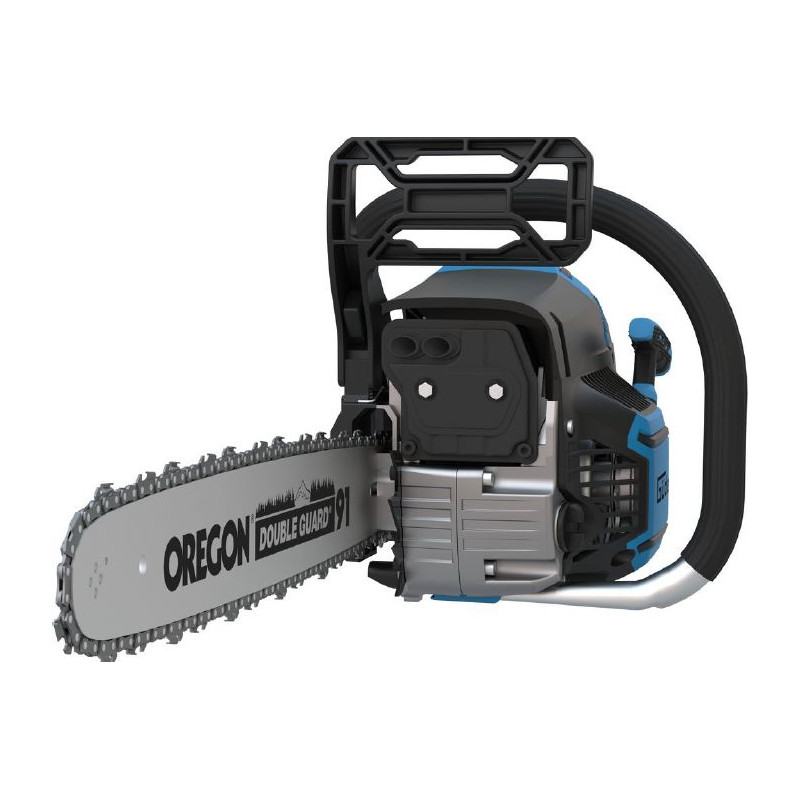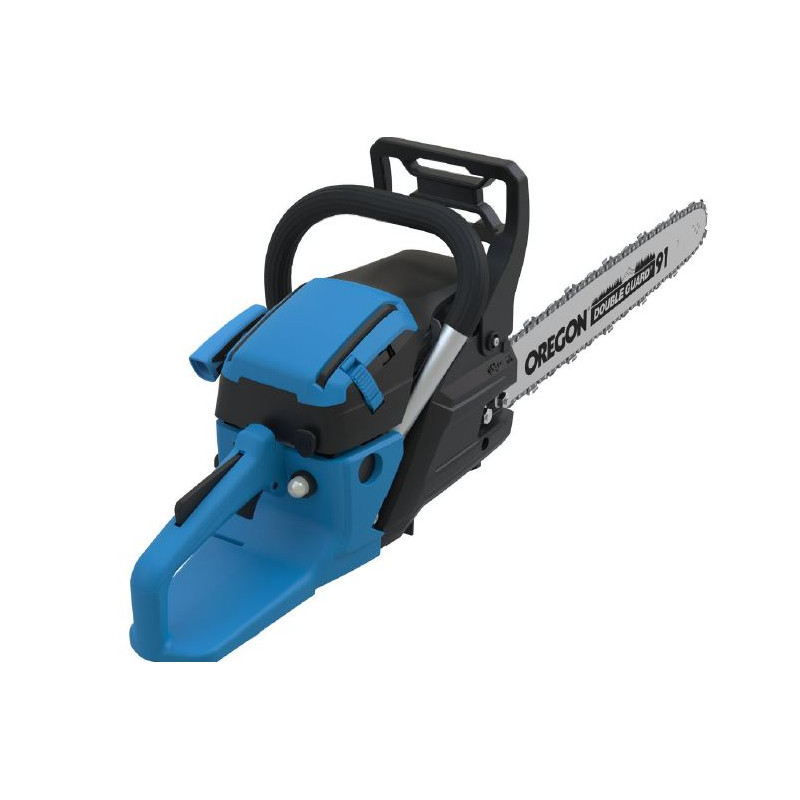 Výkonná benzínová reťazová píla pre náročné použitie pri spracovaní palivového dreva a pre výrub stromov. Vysoko účinný systém zabraňujúci vibráciám. Systém štartovania pomocou pružiny. S čerpadlom Primer a sýtičom. Kovový doraz, obojstranné uloženie kľukového hriadeľa. Prístup ku vzduchovému filtru a zapaľovacej sviečke bez použitia náradia. Vrátane nádoby na miešanie paliva. Ochrana vodiacej lišty a reťaze. Súprava náradia s praktickou taškou na náradie.