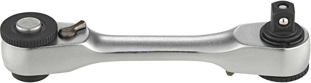 Vyhotovenie: Z chróm-vanádiovej ocele, s uchyteniami na 1/4″ bity (tvar C a E) a 1/4″ adaptéry nástrčných kľúčov. Obe strany majú jemné ozubenie s 90 zubami s veľmi malým uhlom spätného chodu iba 4° a praktické vrúbkované koliesko na rýchlu manipuláciu s bitmi a adaptérmi nástrčných kľúčov. Obe strany majú prepínaciu páčku pre chod vpravo a vľavo, ako aj tlačidlo na uvoľnenie, ktoré zabraňuje náhodnému uvoľneniu adaptérov a bitov.