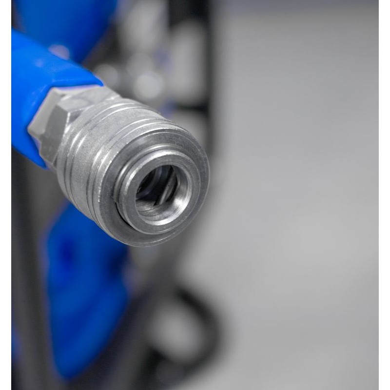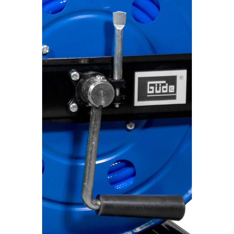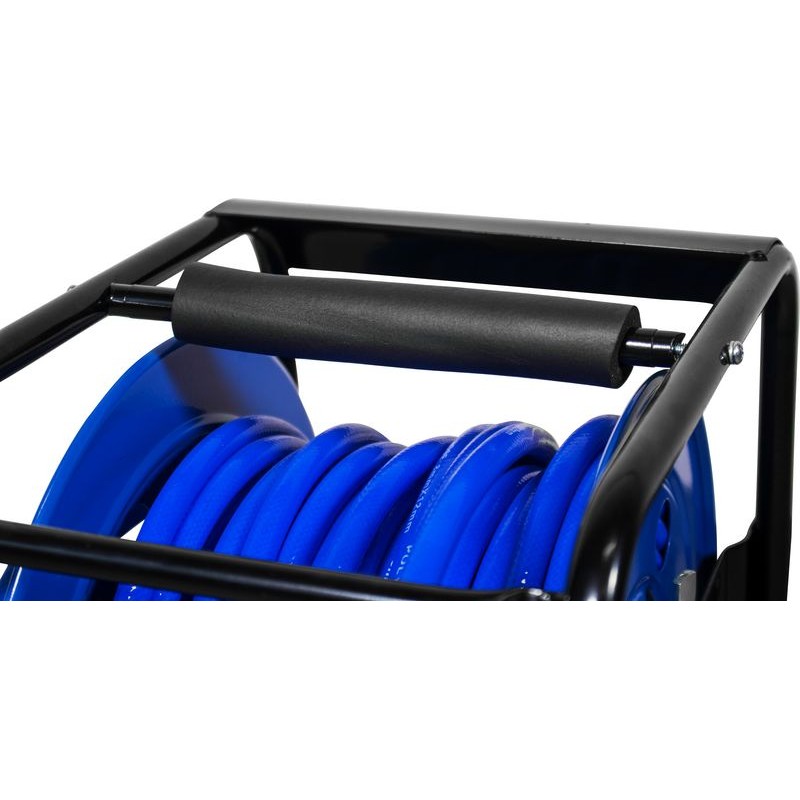 Prenosný navíjací bubon s 30 m PU tlakovou hadicou. Oceľová konštrukcia bubna s pevnou stojnou pätkou a otočným vrchným rámom (360°), kľuka pre navíjanie hadice s aretáciou. Vysokotlaková polyuretánová hadica s textilnou vložkou, vrátane vsuvky a rýchlospojky, odolná proti oderu, prasknutiu, olejovým prímesiam (v stlačenom vzduchu) i nízkym teplotám. Otočné kĺby na obidvoch koncoch hadice zabraňujú jej skrúteniu.