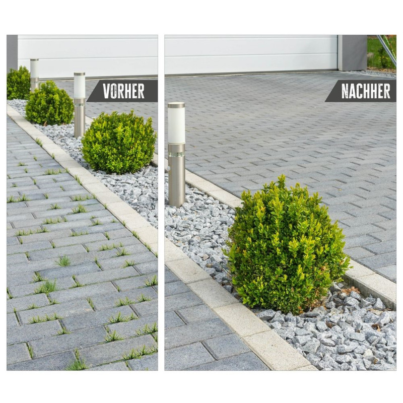 Elektrický čistič špár na čistenie špár chodníkov a terasovej dlažby. Výmena kefy bez použitia náradia (rýchlo upínací systém, kovová kefa, nylonová kefa, ochrana proti striekajúcej vode, vodiace koleso. Mäkká rukoväť, bezpečnostný spínač, nastaviteľná prídavná rukoväť, odľahčenie ťahu kábla.