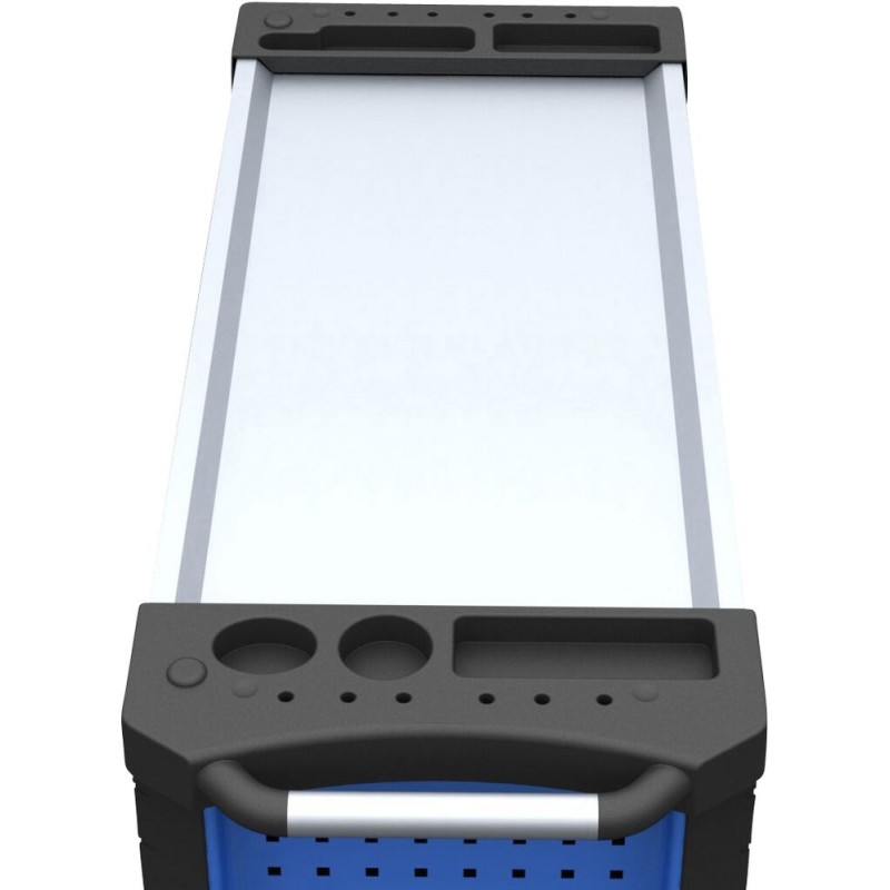Dvojité steny pre väčšiu stabilitu, vysúvateľné zásuvky na guľôčkových ložiskách s uzamykateľným vertikálnym vysúvaním. Povrch z nehrdzavejúcej ocele, normované perforované steny, ochrana rohov proti nárazom, konštrukcia ošetrená práškovou farbou. Centrálne zamykanie zásuviek, zabezpečenie každej zásuvky proti nechcenému zatvoreniu, s možnosťou popisu. Dva otočné kolieska s brzdou, oceľová rukoväť.