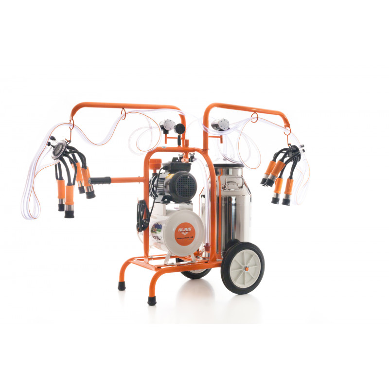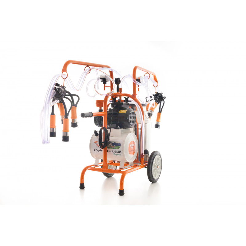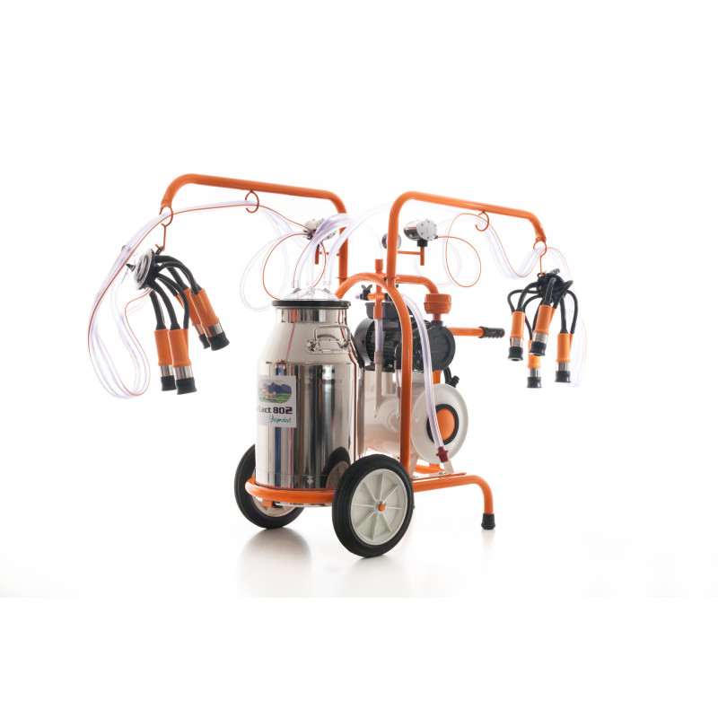 Dojička mlieko RURIS Lact 802 je určená pre malé domácnosti s dvoma stanicami a nerezovou dózou s objemom 40l. Ideálne pre domácnosť s maximálnym počtom 7-14 kusov dobytka. Vákuum sa vytvára v 18 litrovej nádrži, ktorá je antistaticky chránená. Nádrž vyrovnáva tlak a udržiava konštantný pulzný režim a zvyšuje dobu pulzátora. Jednoduché použitie a nenáročná údržba. Všetky dojacie stroje RURIS sú vybavené voľným rukávom na každej stanici na stimuláciu a zvýšenie produkcie mlieka. Kapacita dojenia: 2x 8-10 hovädzieho dobytka / h.