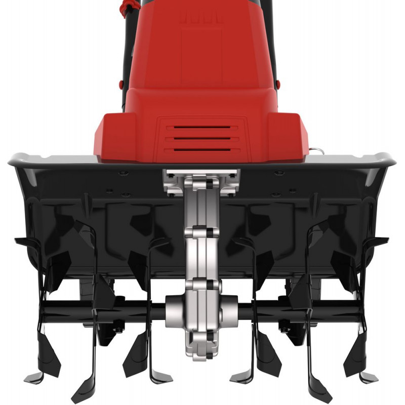 Elektrický kultivátor na prípravu pôdy na menších až stredne veľkých plochách. Na zapracovanie mulču, rašeliny, piesku, hnojiva alebo kompostu do pôdy. Dvojbodový bezpečnostný vypínač, ergonomicky tvarované riadidlá, mohutné, zalomené radlice pre efektívnu prácu, odľahčenie ťahu kábla. Tepelná ochrana proti preťaženiu, kryt prevodovky z hliníka liateho pod tlakom, súprava kolies.