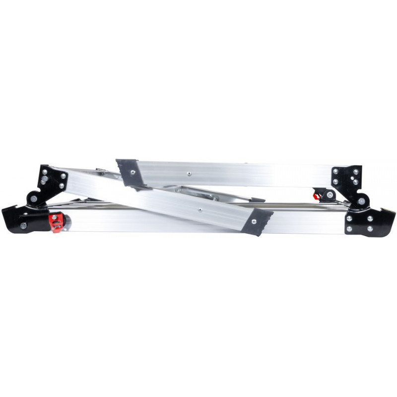 Praktická, skladateľná pracovná plošina na všetky druhy práce. Či už na stavbe alebo v domácnosti, táto ľahká hliníková plošina je nenahraditeľným pomocníkom pri montáži, renovácii aj dekorovaní. Bezpečnostná spona na aretáciu pri rozložení, pogumované nožičky pre bezpečnú stabilitu. Priestorovo úsporná vďaka jednoduchému skladaciemu mechanizmu.