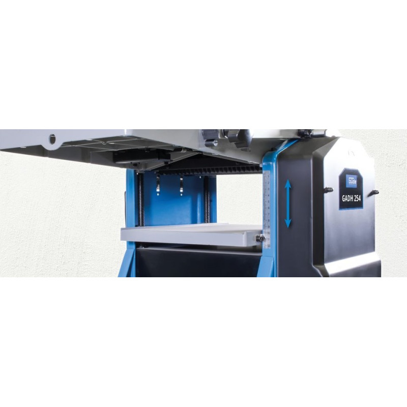 Kombinovaný drevoobrábací stroj (hobľovačka – zrovnávačka) s hobľovacími stolmi z tlakovo liateho hliníka (presné a jemne frézované). Paralelný doraz je možné plynule nakláňať 0°-45°. Nastavenie hrúbky stola ručným kolieskom 6 – 120 mm. Prípojka pre systém odsávania pilín. Nástroj na výmenu nožov. Ochrana hobľovacieho vretena. Bezpečnostný spínač s odpojením elektrického napätia. Spínač preťaženia, posuvná tyč, 4 nohy z ocele. Nožový hriadeľ s 2 hobľovacími nožmi HSS.