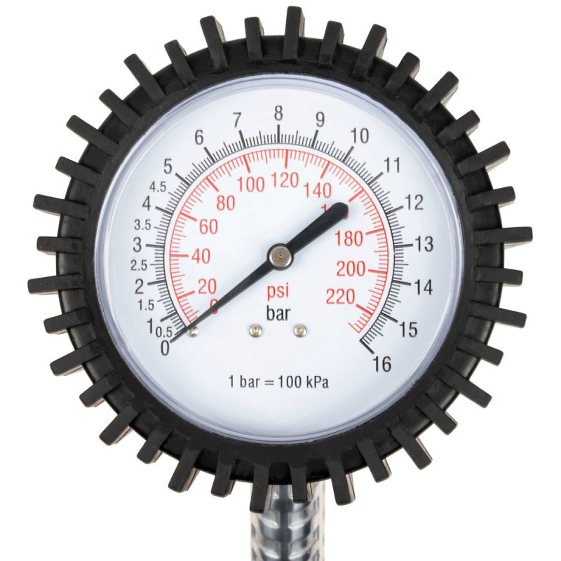 Profesionálna hustilka na pneumatiky s robustnou konštrukciou, mimoriadne dlhou gumovou hadicou a maximálnym prevádzkovým tlakom 12 barov. Ak je tlak priveľmi vysoký, je možné upraviť ho pomocou regulačného ventilu. Gumová manžeta spoľahlivo chráni veľký tlakový manometer pred poškodením. Profil tejto hustilky na pneumatiky pôsobivo zdokonaľuje ventilová tyčka Vario, s ktorou sa dá spojiť plniaci ventil protitlakom aj ťahom. Kovový ventilový konektor Michelin, namontovaná vsuvka, vhodná aj na ventile bicyklov.