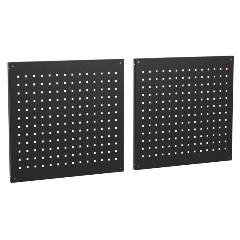Dve rovnaké perforované steny na presnú rohovú montáž. Oceľový plech s práškovou povrchovou úpravou. Vhodné sú všetky držiaky nástrojov a háčiky pre perforované steny a systémy so štvorcovou perforáciou 10 x 10.
