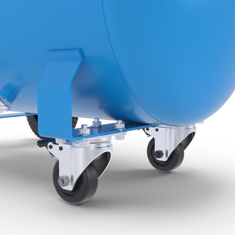 Výkonný, nehlučný štvorvalcový kompresor s veľkou 100-litrovou nádržou, ktorý nachádza uplatnenie v dielňach domácich majstrov aj profesionálov. Tento kompresor so sacím výkonom 654 litrov za minútu a pracovným tlakom 8 bar pokrýva potrebu vzduchu najbežnejšieho pneumatického náradia. Obidva bezolejové a bezúdržbové dvojpiestové agregáty sa spúšťajú s časovým oneskorením prostredníctvom prepínacieho relé, aby sa predišlo napäťovým špičkám pri štartovaní, predovšetkým pri nízkych teplotách. Kompresor s nízkou hlučnosťou a hladinou akustického tlaku iba 73 dBA je ideálny všade tam, kde zbytočný hluk nie je žiaduci. Zvláštnosťou je digitálny tlakový spínač a reduktor tlaku, ktorý zobrazuje a automaticky reguluje tlak zapnutia regulátora, tlak vypnutia a pracovný tlak. Dva dvojpiestové agregáty, 4 vzduchové filtre, dva elektromagneticky ovládané spätné ventily, dve pneumatické spojky. Nastaviteľný digitálny ukazovateľ tlaku, poistný ventil a skrutka na vypúšťanie kondenzátu. Rukoväť na prenášanie a otočné kolieska, vysokokvalitná 100-litrová nádrž.