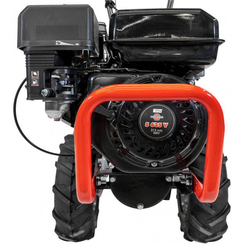 Kultivátor s vysokovýkonným 4-taktným motorom na obrábanie a prípravu ťažkej, kamenistej alebo hlinitej pôdy na sejbu. Prevodový stupeň pre jazdu dopredu a spätný chod je možné zapnúť samostatne, reverzný štartér, benzínový kohútik, ochrana pred nedostatkom oleja. Trojpolohová, výškovo nastaviteľná pogumovaná rukoväť, terénne pneumatiky s hrubým dezénom pre dobrú povrchovú priľnavosť. 5-polohovo nastaviteľný obmedzovač hĺbky, nože na sekanie vyrobené z ocele odolnej voči opotrebovaniu pre dlhú životnosť. Na prípravu pôdy stredných plôch. Na zapracovanie mulču, rašeliny, piesku, hnoja alebo kompostu do pôdy.