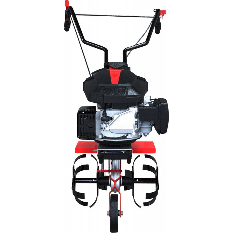 Kultivátor so 4-taktným motorom Power-Engine, široká rukoväť pre jednoduchú manipuláciu, výkyvné vodiace koliesko s Ø 147 mm, režim so stlačeným tlačidlom pre vysokú bezpečnosť, reverzný štart, nože z odolnej ocele s vysokou životnosťou. Pre prípravu pôdy na malých a stredne veľkých plochách. Na zapracovanie mulču, rašeliny, piesku, hnojiva alebo kompostu.