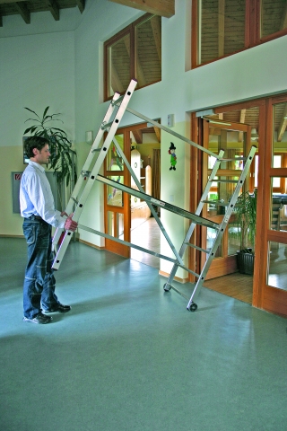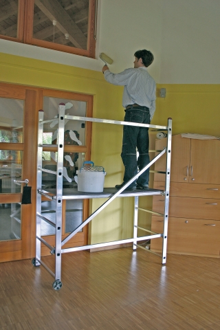 – Jednoduché prenášanie vďaka kolieskam na jednej strane lešenia.
