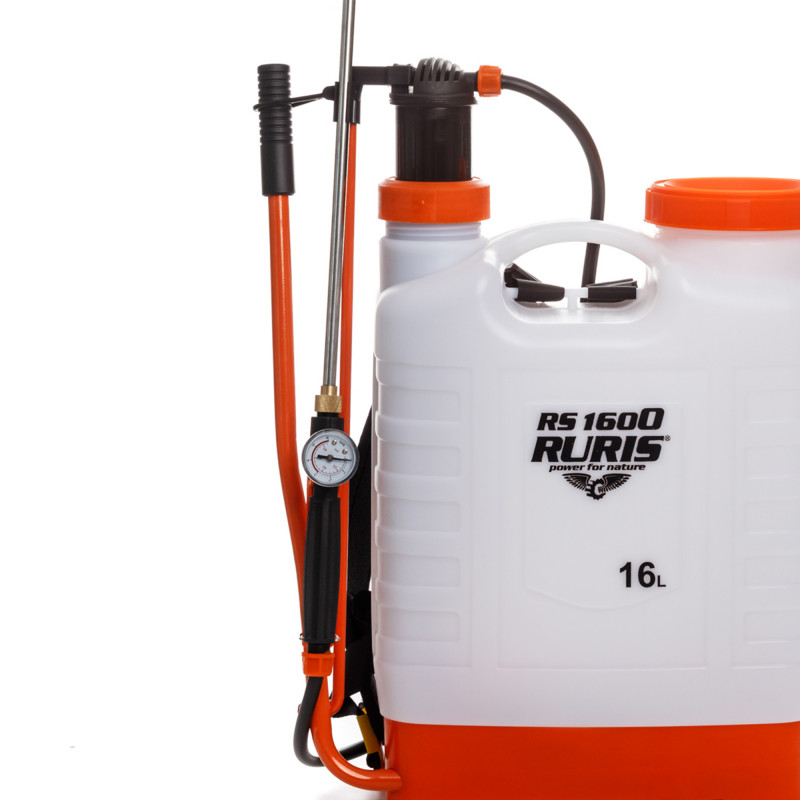 Ručný postrekovač RURIS RS 1600 je vybavený ergonomickou rukoväťou na zvyšovanie tlaku, vďaka ktorej sa ľahko a jednoducho používa pre ručné aj pozemné aplikácie.