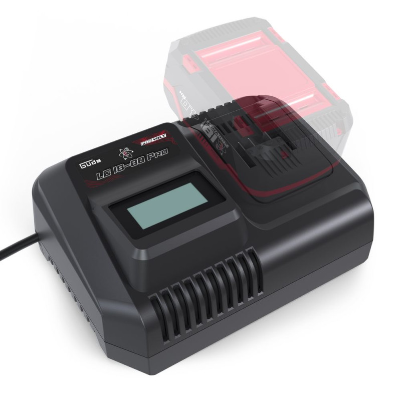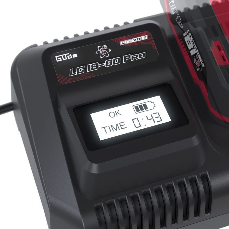 Rýchlonabíjačka LG 18-80 Pro s displejom zobrazuje aktuálnu dobu nabíjania počas procesu nabíjania. To znamená, že zakaždým uvidíte, ako dlho sa batéria nabíja a dobu nabíjania budete mať vždy pod kontrolou. V porovnaní s ostatnými nabíjačkami od výrobcu GÜDE, nabíjačka LG 18-80 Pro s funkciou rýchleho nabíjania nabije akumulátory výrazne rýchlejšie, a tak zabezpečí, že budete môcť ešte rýchlejšie opäť pracovať na plný výkon. Táto nabíjačka spoľahlivo vráti do prevádzky akumulátory, či už ide o akumulátory s kapacitou 2,0 Ah, 4,0 Ah, 6,0 Ah alebo 8,0 Ah. Jednoducho pripojte batériu, skontrolujte displej a nabíjanie sa začne. Vďaka rýchlonabíjačke budete kedykoľvek pripravený na prácu so svojim akumulátorovým náradím, či už v dielni, na stavbe alebo doma. Pracujte so systémom 18 V E3, pretože Váš čas je drahocenný. A táto nabíjačka akumulátorov by to mala odzrkadľovať. Rýchlonabíjačka s displejom nielenže rýchlo dostane Vaše akumulátory späť do špičkovej formy, ale počas procesu nabíjania Vám priamo na dobre čitateľnom displeji zobrazí aktuálnu dobu nabíjania. To znamená, že zakaždým budete vidieť, ako dlho sa batéria nabíja a lepšie si dokážete naplánovať svoj pracovný deň bez toho, aby ste neustále museli kontrolovať proces nabíjania. Jednoducho pripojte batériu, prečítajte si údaj na displeji a zatiaľ, čo sa akumulátor spoľahlivo nabíja, venujte sa ďalším úlohám. S touto nabíjačkou budete vždy pripravený na to, aby ste opäť použili svoje akumulátorové náradie, či už v dielni, na stavenisku alebo v garáži. Vďaka robustnému telesu a jednoduchej obsluhe je rýchlonabíjačka LG 18-80 Pro spoľahlivým pomocníkom pre každého domáceho majstra aj remeselníka.