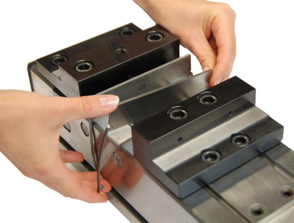 Použitie: Upínací strmeň Cliparc vložte do presných podložiek a zakliknite na zveráku. Nie je potrebný žiadny montážny nástroj.