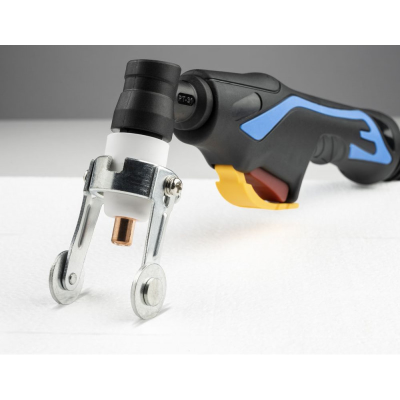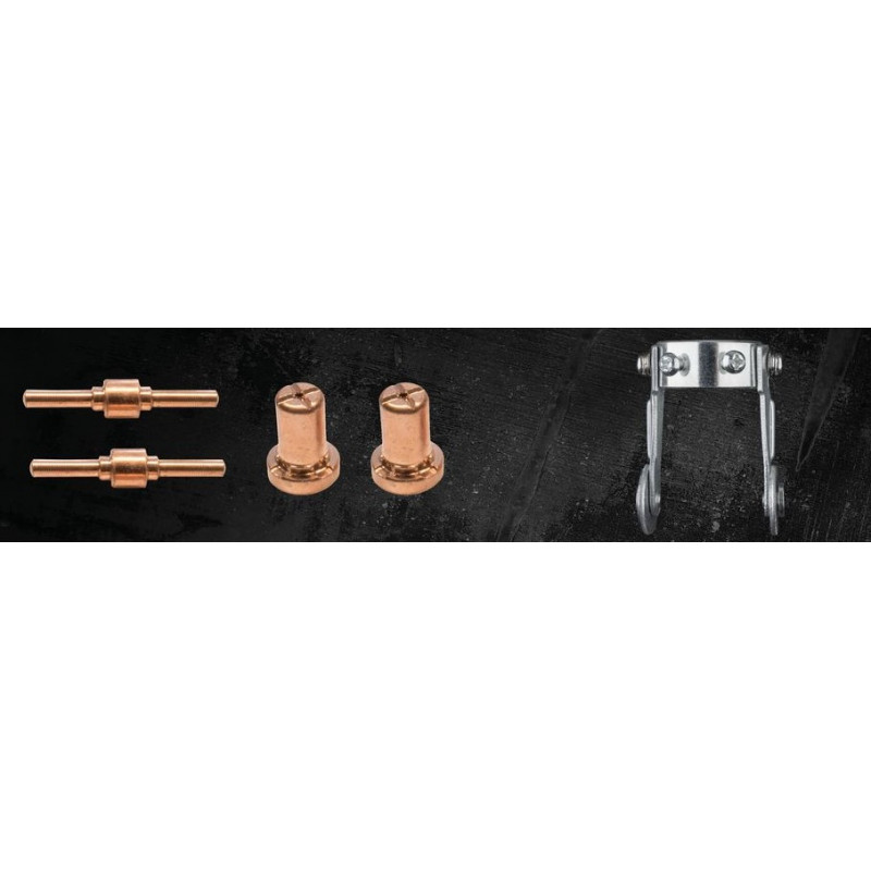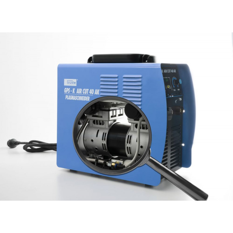 Vysokofrekvenčná plazmová rezačka s integrovaným kompresorom sa dá použiť stacionárne v dielni, aj mobilne pri montáži. Maximálna hrúbka rezaného materiálu 12 mm. Rezací horák 2,5 m s valčekovým vedením. Najnovšia invertorová technológia a komponenty ako IGBT umožňujú kompaktný dizajn, ako aj prevádzkovú frekvenciu až 40 000 Hz a výrazne vyšší pracovný cyklus ako bežné transformátorové zariadenia. So vstavanou zapaľovacou poistkou; HRD (Hazard Reduction Device) a inovatívna vypínacia poistka na baterke, užívateľ je optimálne chránený. Uzemňovací kábel 4 mm2 (s 9-milimetrovým konektorom) 1,5 m. Dve súpravy náhradných trysiek.