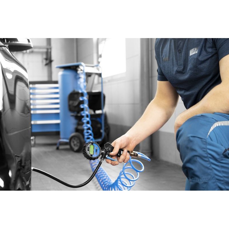 Flexibilná polyuretánová špirálová hadica, vrátane vsuvky a rýchlospojky. Ochrana proti zalomeniu, pružná aj pri nízkych teplotách.