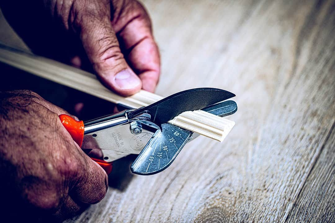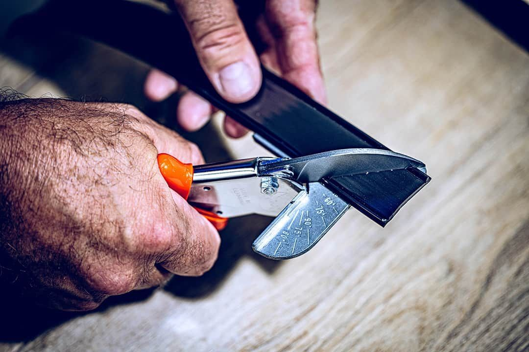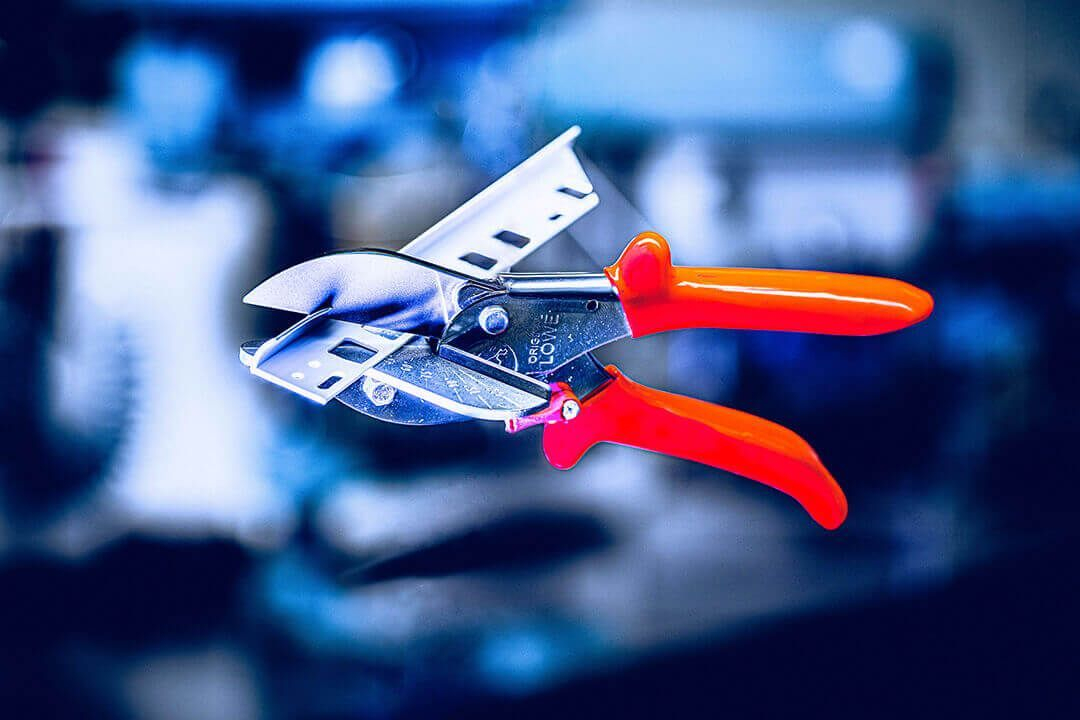 Originálne nožnice LÖWE umožňujú rezať plastové obklady pod uhlom, v pravom uhle alebo do iných tvarov. Použitie nožníc namiesto píly zabraňuje tvorbe otrepov na materiáli a usadzovaniu triesok na pracovnej ploche. Vhodné pre drevo, plast a gumu.