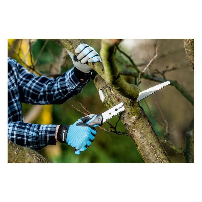 - ergonomická jednoručná píla s čepeľou z kvalitnej ocele, určená na rezanie čerstvých, suchých konárov a výhonkov