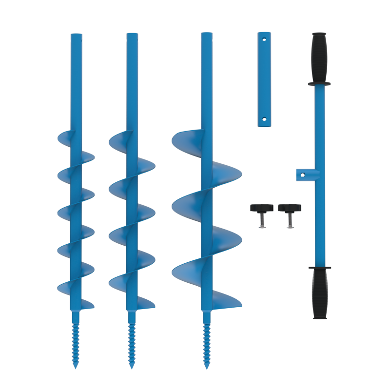 Ručný zemný vrták s rôznymi nadstavcami. Vhodný na osádzanie plotových stĺpikov, sadenie stromov, kríkov a podobne. Krížová kovová rukoväť. S vrtákmi 80 mm, 100 mm a 150 mm. Celková výška 1030 mm.