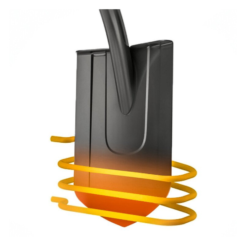 - má kalenú, nabrúsenú hlavu z pružinovej bórovej ocele, vystuženú prelismi, pevnú a odolnú kompozitnú rukoväť so sklolaminátom a odolný oválny driek
