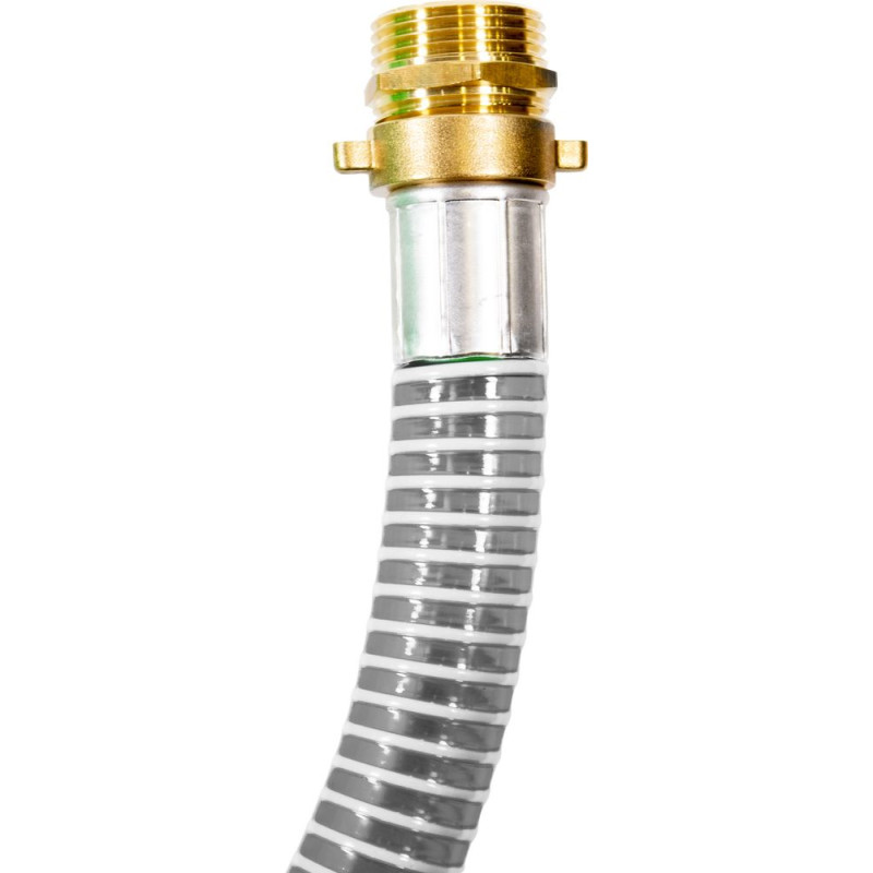 Špirálová sacia garnitúra s mosadznými armatúrami, mosadzným spätným ventilom so sacím košom z ušľachtilej ocele, zalisované koncovky. S prípojkou Vario pre vonkajší a vnútorný závit.
