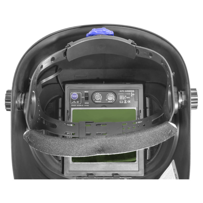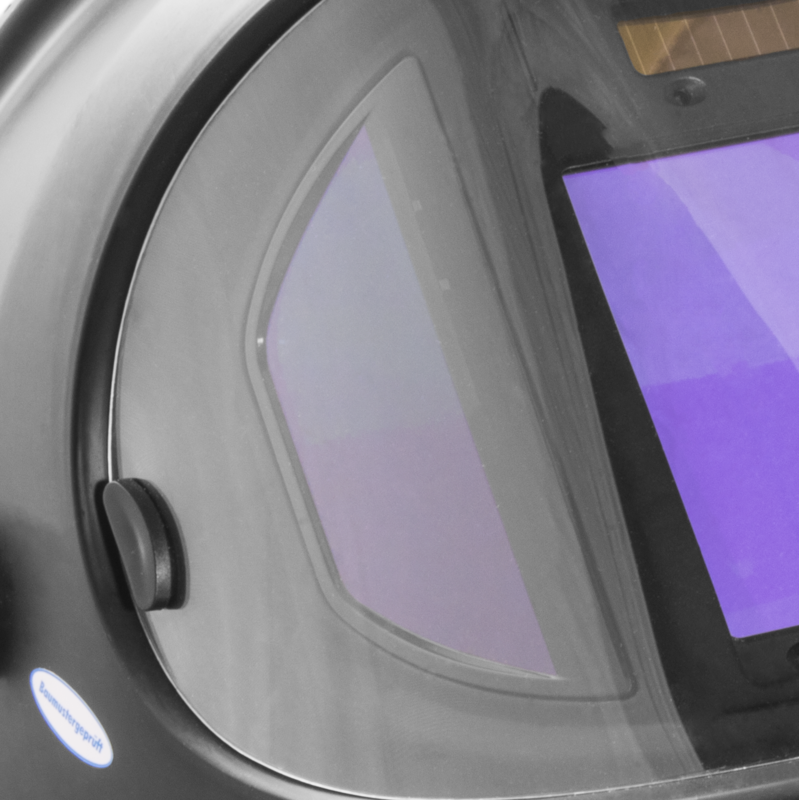 Pevná helma odolná proti nárazu, plynulo nastaviteľný stupeň stmievania 5-9-13, plynulo nastaviteľná citlivosť filtra, nastaviteľná doba oneskorenia, samostmievací filter (100 x 90 mm), solárne nabíjanie + vymeniteľná batéria CR 2450/3V, kontrolná funkcia batérie. Plynulo nastaviteľná výstužná páska na hlavu. Čalúnená páska na čelo, zorný uhol 180° cez bočné okienka, pravé farby (pre lepšiu viditeľnosť, bez farebného tieňovania), prepínateľná na rezné, brúsne a zváračské práce.