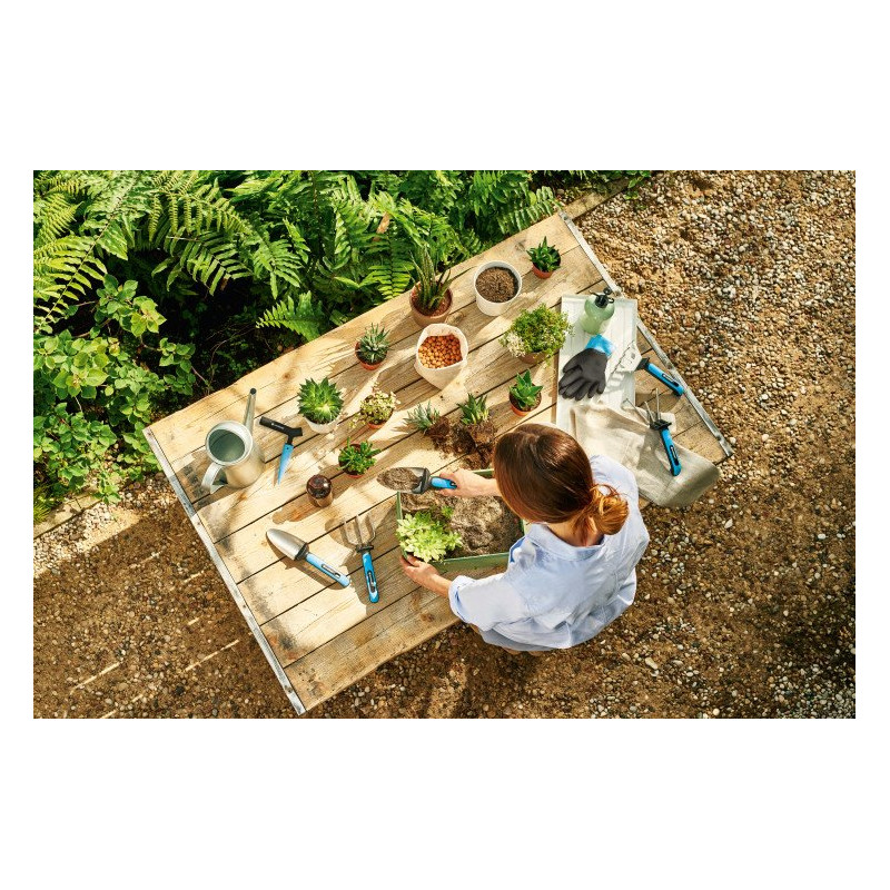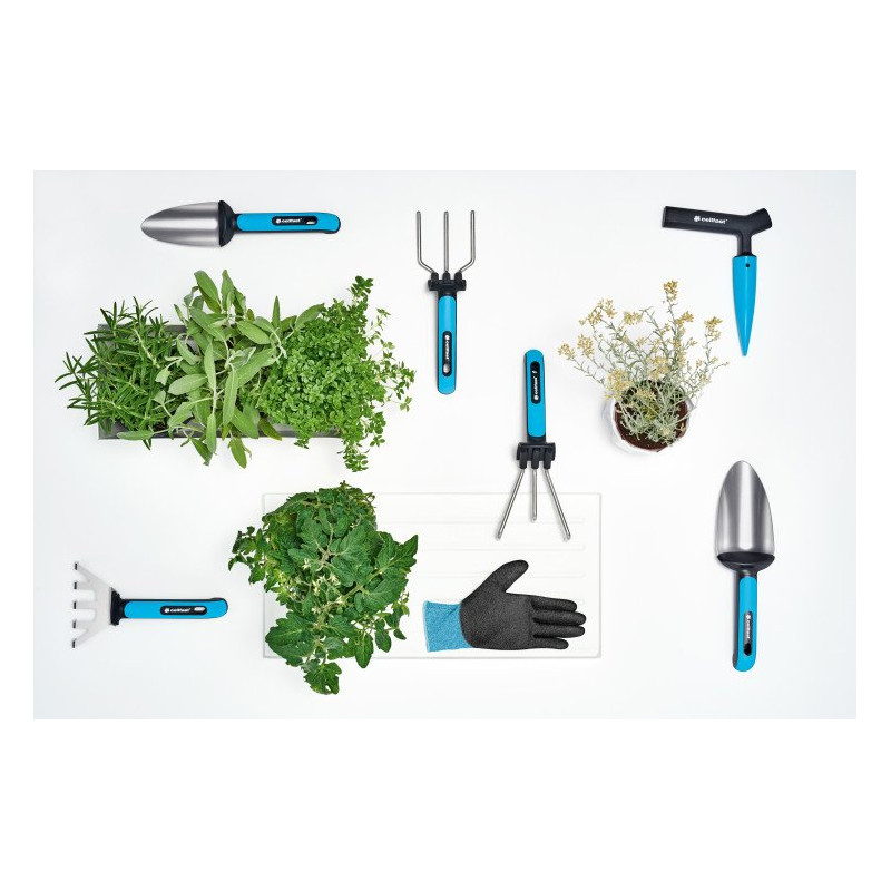sada obsahuje celý rad nástrojov starostlivosti ENERGO™: úzku a širokú lopatku, vidly, kultivátor, hrable a zberač