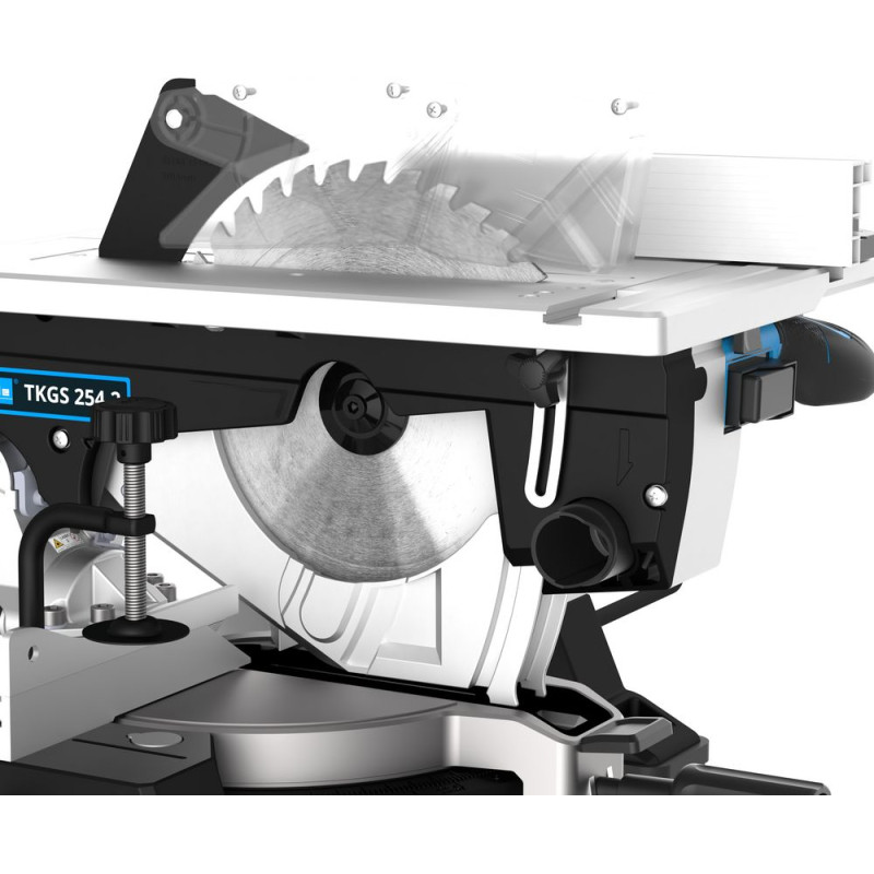 Skracovacia a pokosová píla s doplnkovou funkciou stolnej kotúčovej píly na pozdĺžne rezy. Rýchle prestavenie zo skracovacej prevádzky na stolnú. Jednoduchá preprava vďaka zaisteniu pílového suportu. Rýchle a presné nastavenie bežných uhlov. Laser na presné zobrazenie čiary rezu. Svorka na materiál pre bezpečné upevnenie obrobku. Ochrana pred opätovným spustením: zabraňuje neúmyselnému spusteniu po prerušení elektrického prúdu. Paralelný doraz, uhlový doraz, posuvná tyč, prípojka pre odsávacie zariadenie.