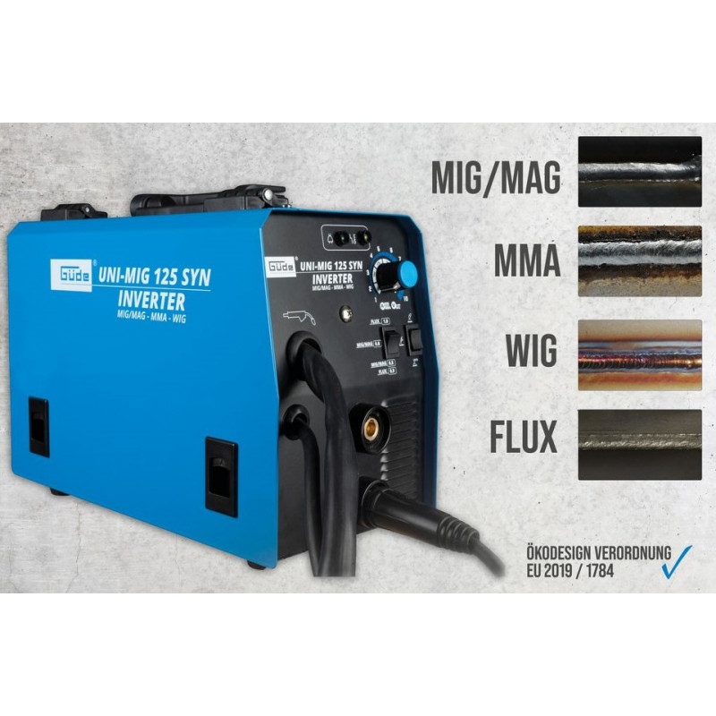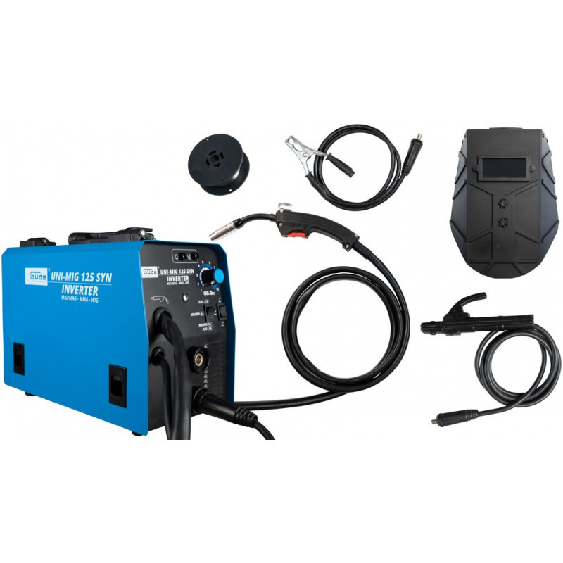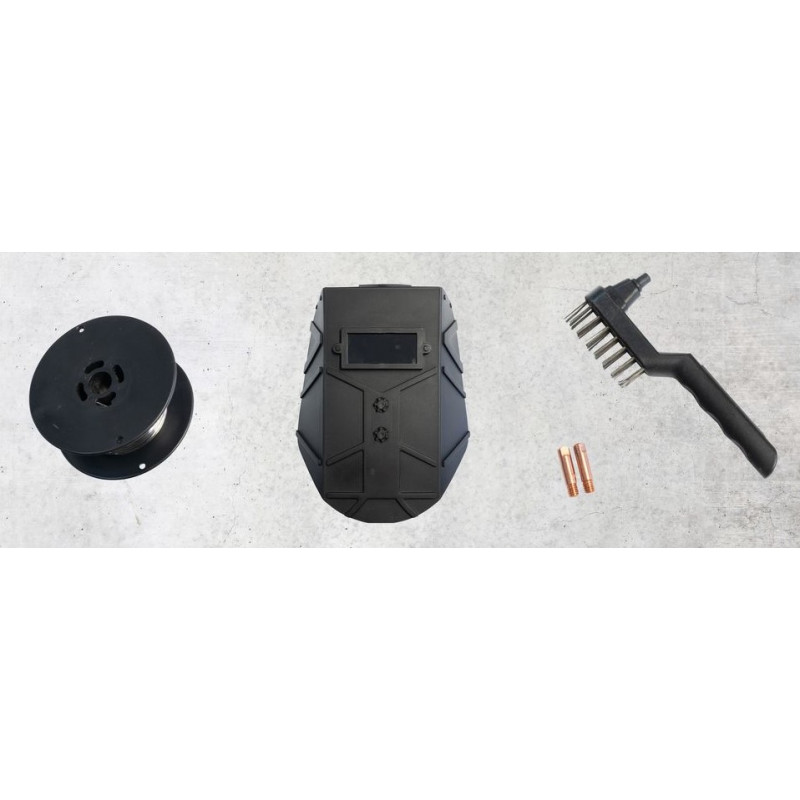 Malá, univerzálna invertorová zváračka pre všetky 4 zváracie procesy, MIG-MAG, MMA (zváranie elektródou), FLUX (zváranie plneným drôtom) aj zváranie WIG, s voliteľne dostupným horákom WIG (kód tovaru: 41690). Na príležitostné použitie, na zváračské práce menšieho a stredného rozsahu, vhodná pre domácich majstrov a na hobby využitie. Osvedčená doplnková vlastnosť Anti-Stick zaisťuje príjemné zváranie, a to aj v náročných podmienkach. Držiak elektród a ukostrovacia svorka, ako aj kladivo s kefou pre procesy MMA sú súčasťou štandardnej výbavy, taktiež horák MIG-MAG. Nový, inovatívny, synergicky regulovaný posuv drôtu sa po výbere procesu zvárania, hrúbky drôtu a hrúbky zvárania automaticky nastaví na správnu rýchlosť. Zváračský štít, ktorý je tiež súčasťou balenia, poskytuje potrebnú ochranu pri zváraní. Vhodná na plastové cievky 1 kg, korpus vyrobený z oceľového plechu s povrchovou úpravou práškovaním, tepelná ochrana proti preťaženiu. Hadicový zväzok 2 m, uzemňovací kábel 1,5 m s ukostrovacou svorkou, držiak elektród, 3 prúdové trysky (0,6/0,8/0,9 mm), 1 plynová tryska, plnený drôt 0,45 kg.