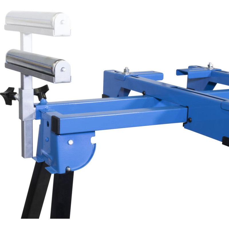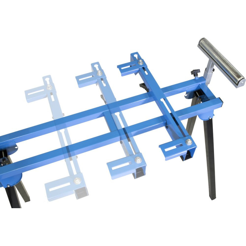 Univerzálny nastaviteľný podstavec s vysokou nosnosťou pre dosiahnutie pohodlnej pracovnej výšky, pre kapovacie píly, hobľovačky, pásové píly, tanierové brúsky. Vďaka plynulým, výškovo nastaviteľným valčekovým podperám so zarážkou na oboch stranách je možné ľahko a bezpečne spracovať aj dlhé obrobky, najmä pri použití píl na priečne a radiálne rezy, sklopné nohy.