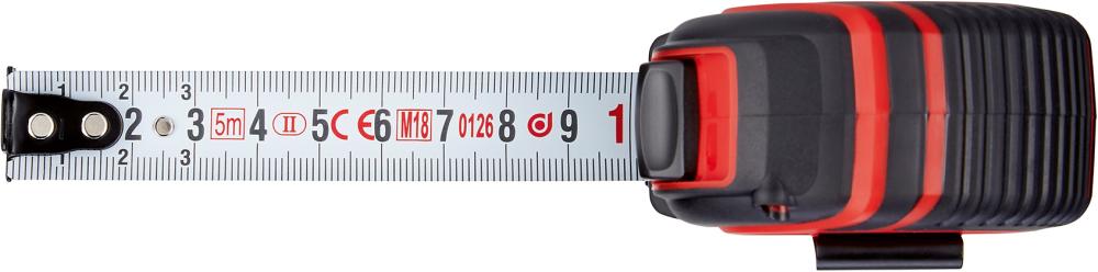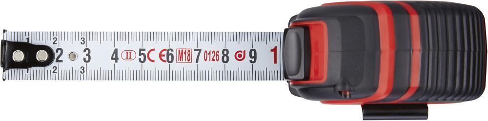 Vyhotovenie: Zo zakrivenej a kalenej pružinovej ocele s duplexnou stupnicou v mm, v plastovom puzdre ABS, ktoré sa vyznačuje vysokou odolnosťou proti nárazom. Povrchová úprava pásma priehľadným lakom kvôli ochrane proti opotrebovaniu. Automatické zvinutie pásma pomocou tlačidla Stop, pohyblivé kovanie na začiatku pásma, na meranie vnútorných a vonkajších rozmerov.