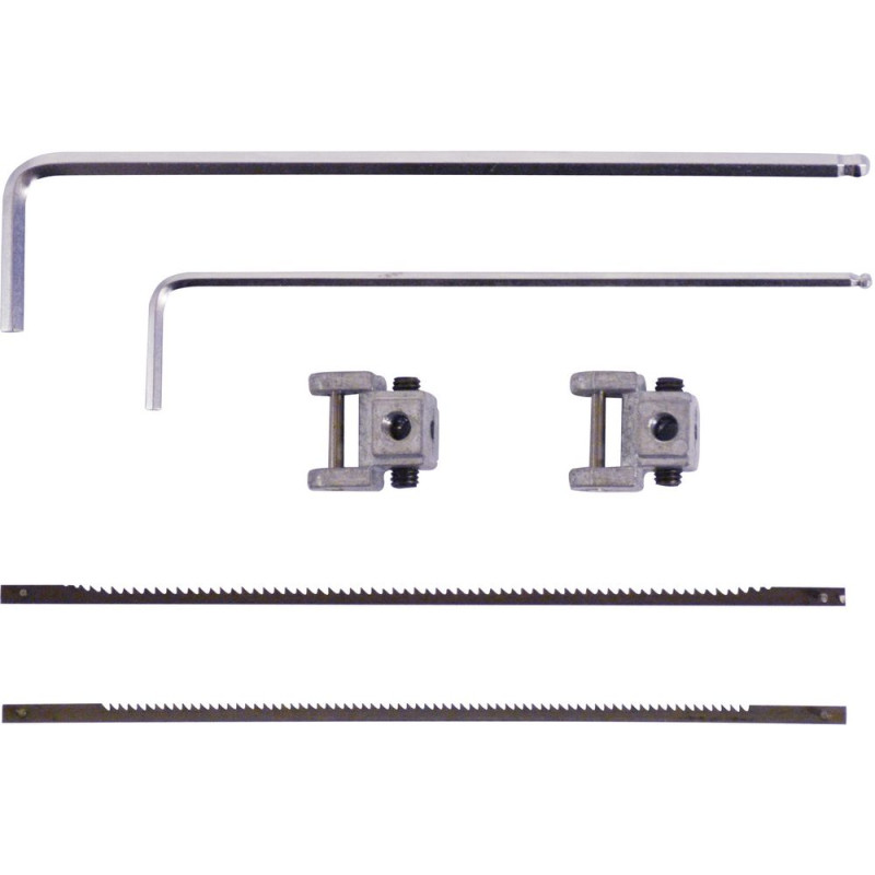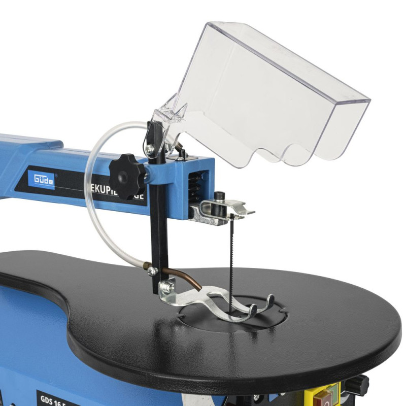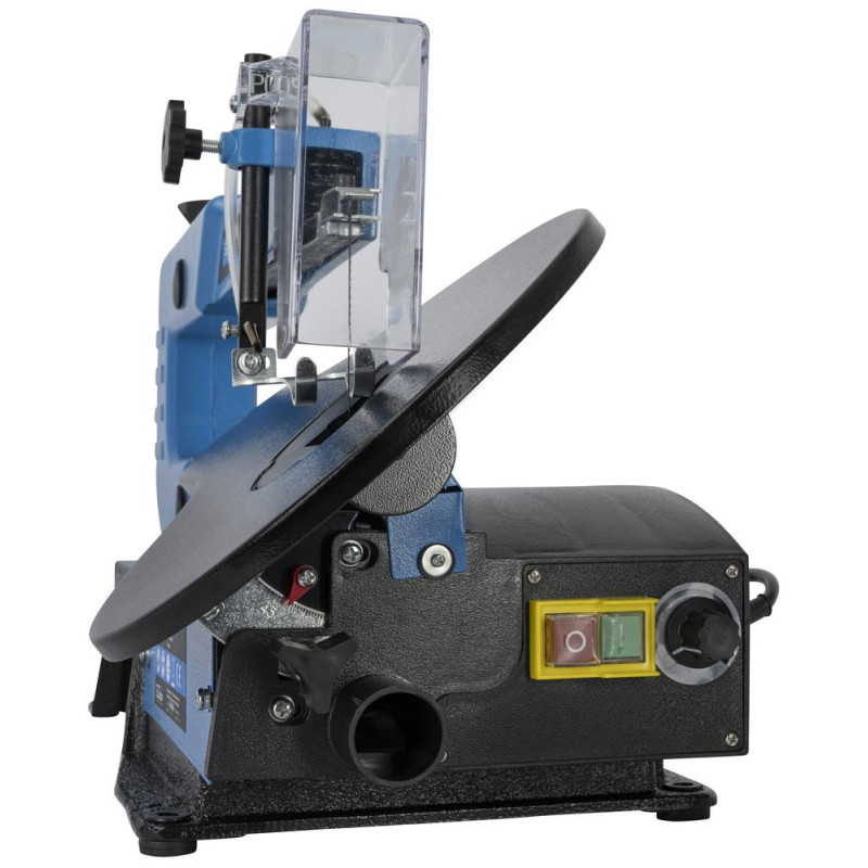 Vyrezávacia píla na presné vyrezávanie do dreva a plastov, s plynulou reguláciou otáčok. Základný podstavec z oceľovej liatiny, stôl otočný o 45°, ventilátor pre čistenie reznej dráhy. Vypínač pri nulovom napätí, nastaviteľné otáčky, otvory pre upevnenie k stolu. Ideálna pre modelárstvo a remeselné práce s drevom a plastom. Vrátane pílových listov 1x 20 Z/“ a 2x 15 Z/“.