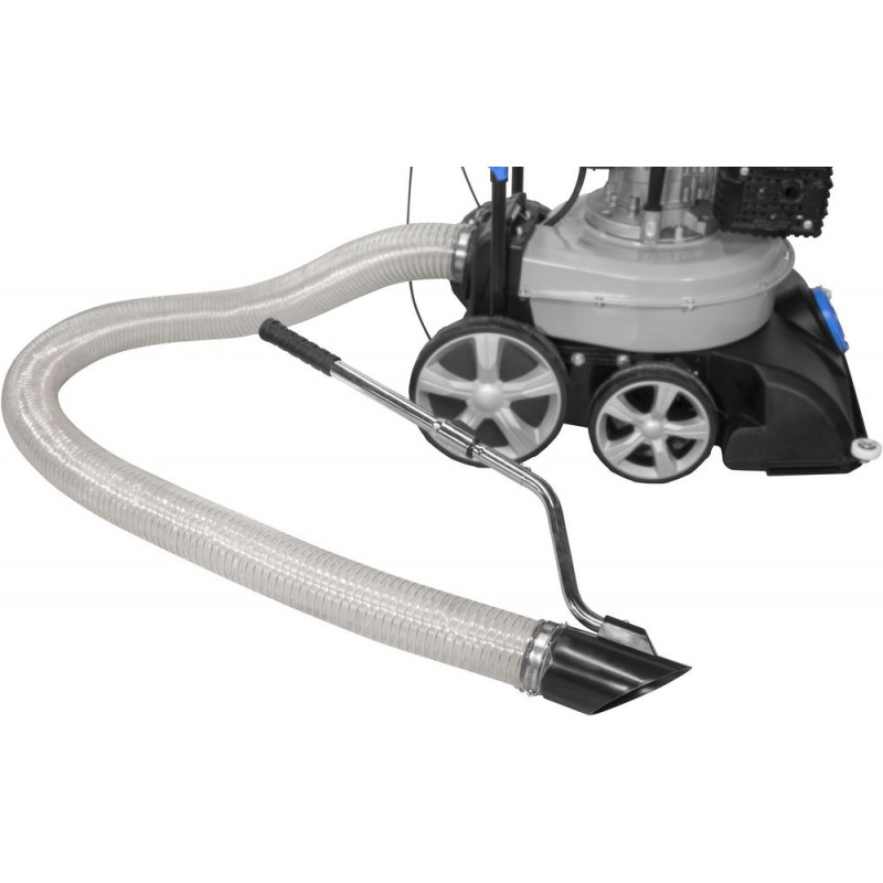 Vysávač lístia s výkonným 4-taktným OHV motorom a 150-litrovým zberným vakom. Funkcia vysávania, fúkania, zametania a drvenia. Veľké kolesá pre jednoduchý chod aj po nerovných plochách. Pohon zadných kolies cez zapínateľný ľahký prevod. Prestaviteľná výška nasávania, ergonomicky tvarovaná rukoväť, 2,5-metrová nasávacia hadica s priemerom 90 mm, s násadou. Vhodný na použitie okolo domu a na dvore, na parkoviskách a odstavných plochách, na plochy od 1500 do 2000 m2. V balení nasávacia hadica, zametacie valce.