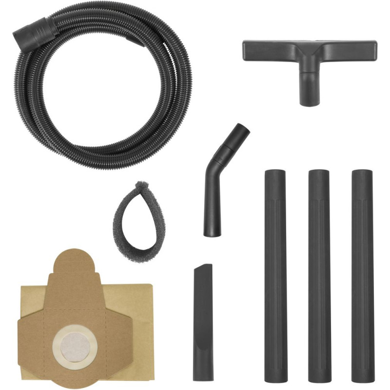 Vysávač s nehrdzavejúcou nádobou z ušľachtilej ocele, 3-dielna sacia rúra, plynule regulovateľný prúd vzduchu, integrovaný držiak na príslušenstvo, 4 otočné kolieska. Príslušenstvo: sacia hadica 1,5 m, rukoväť s pripojením vzduchu, 3-dielna plastová sacia rúra (98 cm), 1 podlahová hubica, 1 hubica na špáry, penový filter, 1 papierové filtračné vrecko.