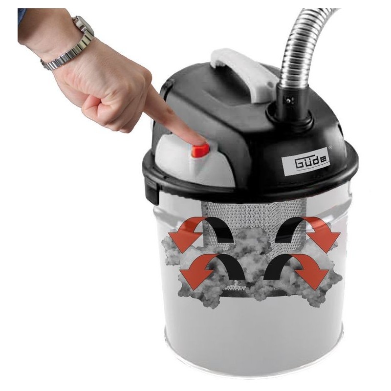 Výkonný vysávač na popol s integrovaným čistením filtra Jet Clean. Tento inovatívny systém čistenia umožňuje rýchlejšiu, pohodlnejšiu prevádzku. Pri bežných vysávačoch popola sa najjemnejšie častice zachytávajú do záhybov filtra, čoho následkom môže byť zníženie alebo úplné zastavenie prúdu nasávaného vzduchu. Vďaka vstavanému čisteniu filtra Jet Clean vo vysávači GUDE GA 1000 D je vždy zabezpečený najvyšší sací výkon. Krátkym stlačením červeného tlačidla počas prevádzky je prúd vzduchu vytláčaný cez filter späť do nádoby vysávača. Takto systém Jet Clean vyfúkne z filtra aj tie najmenšie čiastočky.